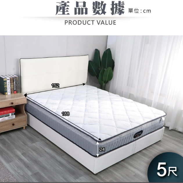 ◆尺寸:雙人床墊- 5尺- 長186 X寬150cm X高24