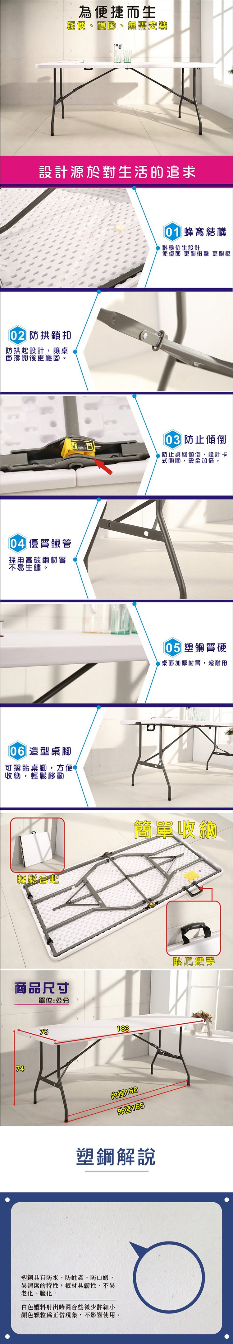 CZ183Z 升級版⇧桌面可折多用途183*76塑鋼折合桌