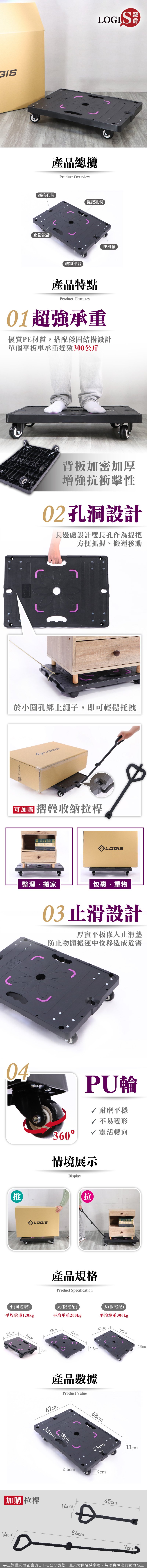 ✔ 優質PE材料,加上良好的結構設計,單個平板車承重達到300kg。