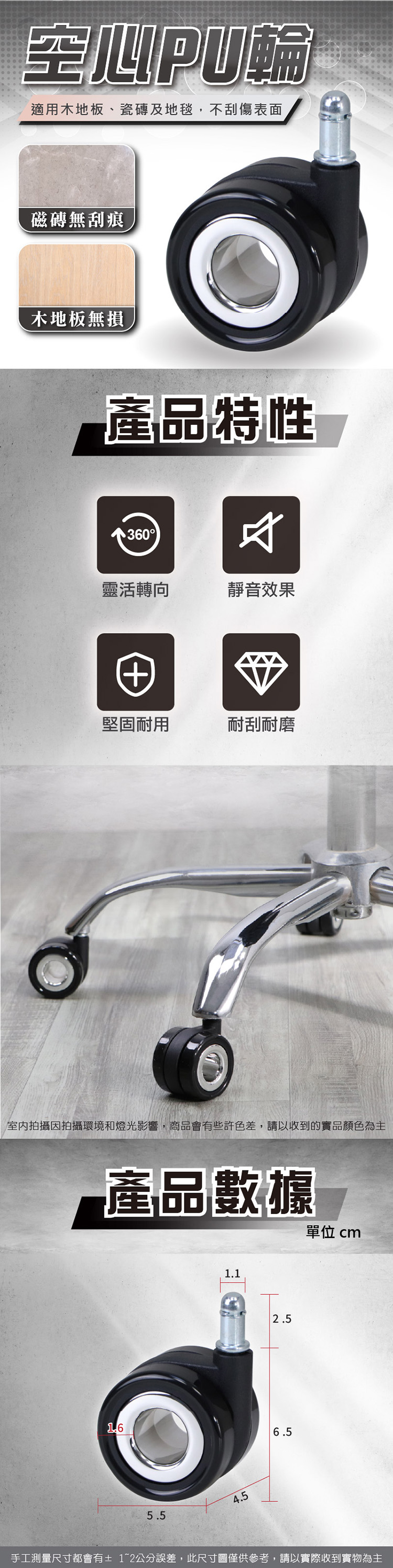 ✔ 適用尺寸:標準椅輪直徑11mm(絕大多數電腦椅/辦公椅皆適用)
