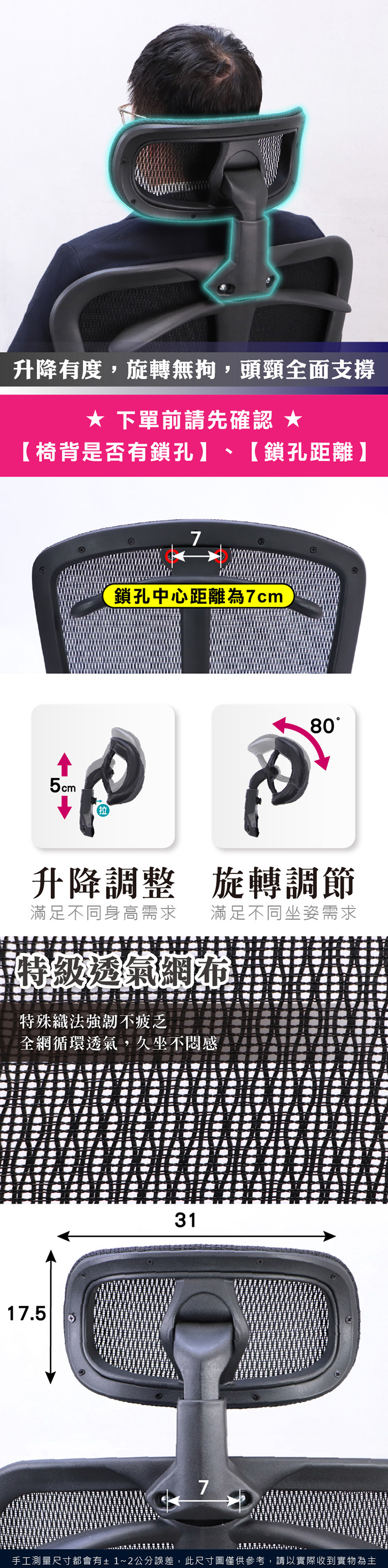 枕面材質:透氣網布