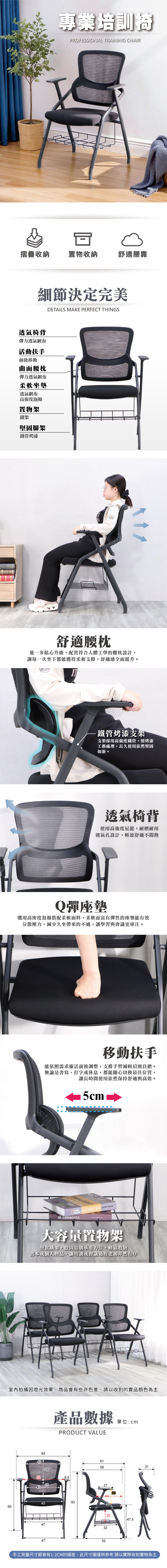 P62B-LN護腰會議培訓桌椅 含置物架 補習班椅 課桌椅 折疊椅 折合椅