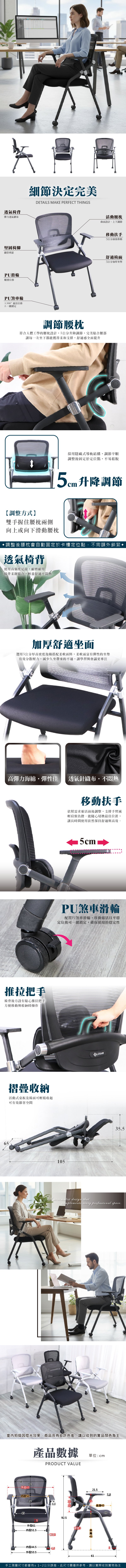 BK-651-PU 調節護腰會議培訓椅 補習班椅 課桌椅 折疊椅 折合椅 滑輪