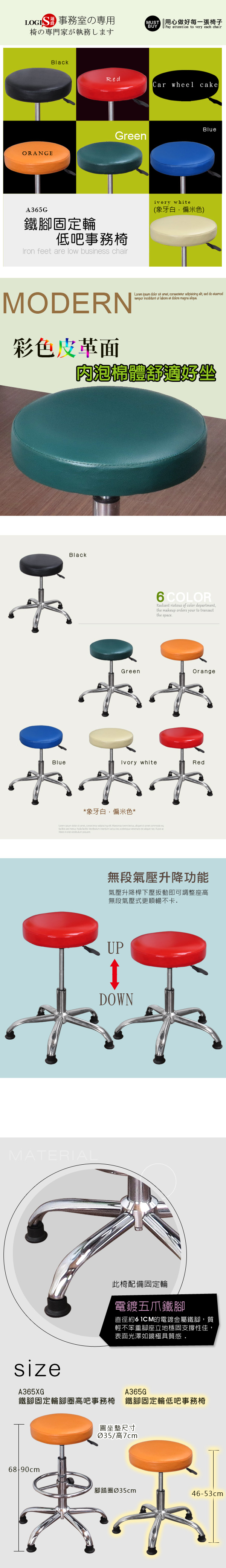 A365G 小西點吧台腳圈鐵腳固定輪工作椅Q彈厚墊 美容椅 休閒椅 美髮椅 旋轉椅